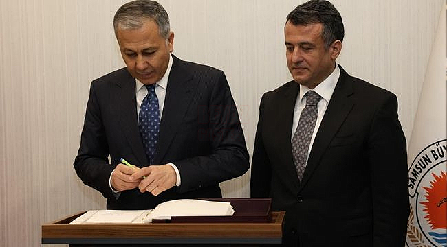 İçişleri Bakanı Ali Yerlikaya, Samsun programı kapsamında Büyükşehir Belediye Başkanı Halit Doğan’ı ziyaret etti. Başkan Doğan, “İçişleri Bakanımız Ali Yerlikaya’yı şehrimizde ve belediyede ağırlamaktan mutluluk duyuyoruz” dedi.