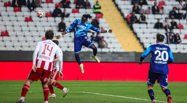 56. dakikada Antalyaspor’un sağ taraftan kullandığı serbest vuruşta ceza sahası içine gönderilen topa yaptığı kafa vuruşu kaleci Okan’da kaldı.
